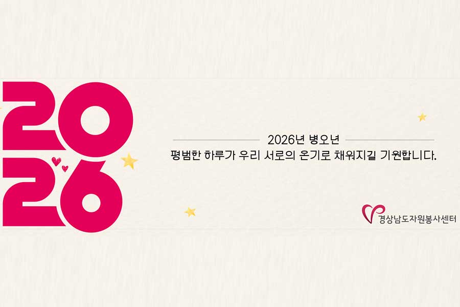 청소년 온라인 교육 자원봉사 자료실 자원봉사 활동관리 할인가맹점 명예의 전당 자원봉사 활동처 센터소식 공지사항활동앨범 경상남도자원봉사센터 센터장 채용 (재)공고 일정 변경 공고 경상남도자원봉사센터 센터장 채용 (재)공고 일정 변경 공고 26 01.07 경상남도자원봉사센터 센터장 채용 (재)공고 경상남도자원봉사센터 센터장 채용 (재)공고 26 01.05 경상남도 자원봉사 실태조사 연구 용역 결과 공개 경상남도 자원봉사 실태조사 연구 용역 결과 공개 25 12.31 경상남도자원봉사센터 직원 채용 공고 경상남도자원봉사센터 직원 채용 공고 25 12.29 경상남도자원봉사센터 센터장 채용 공고 경상남도자원봉사센터 센터장 채용 공고 25 12.16 공지2 공지2 25 12.03 🧤🧣한화모멘텀, 따뜻한 겨울나기 온기나눔 키트 지원☃️ 2025 경남지역 자원봉사캠프 평가회 개최 현대로템 따뜻한 온기나눔 사랑의 김장🥬❤️ 🧡한화에어로스페이스 2025 따뜻한 온기나눔 사랑의 김장🍚🥬 한화에어로스페이스 창원3사업장 ‘사랑의 구르미카’ 전달식🧡🎊 밀양 산내면 사과수확 농촌봉사활동🍎 공지사항 경상남도자원봉사센터 센터장 채용 (재)공고 일정 변경 공고 경상남도자원봉사센터 센터장 채용 (재)공고 일정 변경 공고 26 01.07 경상남도자원봉사센터 센터장 채용 (재)공고 경상남도자원봉사센터 센터장 채용 (재)공고 26 01.05 경상남도 자원봉사 실태조사 연구 용역 결과 공개 경상남도 자원봉사 실태조사 연구 용역 결과 공개 25 12.31 경상남도자원봉사센터 직원 채용 공고 경상남도자원봉사센터 직원 채용 공고 25 12.29 경상남도자원봉사센터 센터장 채용 공고 경상남도자원봉사센터 센터장 채용 공고 25 12.16 공지2 공지2 25 12.03 활동앨범 🧤🧣한화모멘텀, 따뜻한 겨울나기 온기나눔 키트 지원☃️ 2025 경남지역 자원봉사캠프 평가회 개최 현대로템 따뜻한 온기나눔 사랑의 김장🥬❤️ 🧡한화에어로스페이스 2025 따뜻한 온기나눔 사랑의 김장🍚🥬 한화에어로스페이스 창원3사업장 ‘사랑의 구르미카’ 전달식🧡🎊 밀양 산내면 사과수확 농촌봉사활동🍎 SNS Close SITE MAP 센터소개 센터소식 정보자료실 커뮤니티 인사말 공지사항 자원봉사 소개 Q&A 연혁/조직 활동앨범 자원봉사 자료실 지역센터 연락처 주요사업 청소년 온라인 교육 BI 찾아오시는길