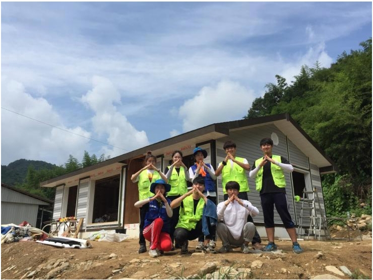 해피빌더스는 ‘행복과 희망을 지어주는 사람들’이라는 비전을 가진 대학생 봉사 동아리입니다. 저희는 우현이네 가족에게 다시 새로운 보금자리를 만들어 주기로 마음먹었습니다. 근데 학생들이 뭘 할 수 있겠어요. 가지고 있는 건 넘치는 힘과 열정밖에 없는걸요. 그래서 저희는 한국 해비타트의 힘을 빌리기로 하였습니다. 그곳의 목조건축학교에서 5주간 목조건축 기술을 배우고, 구슬땀을 흘리며 배운 협동심으로 열정만 가득하던 저희가 한 가정에게 삶의 터전을 선물 할 수 있었습니다.