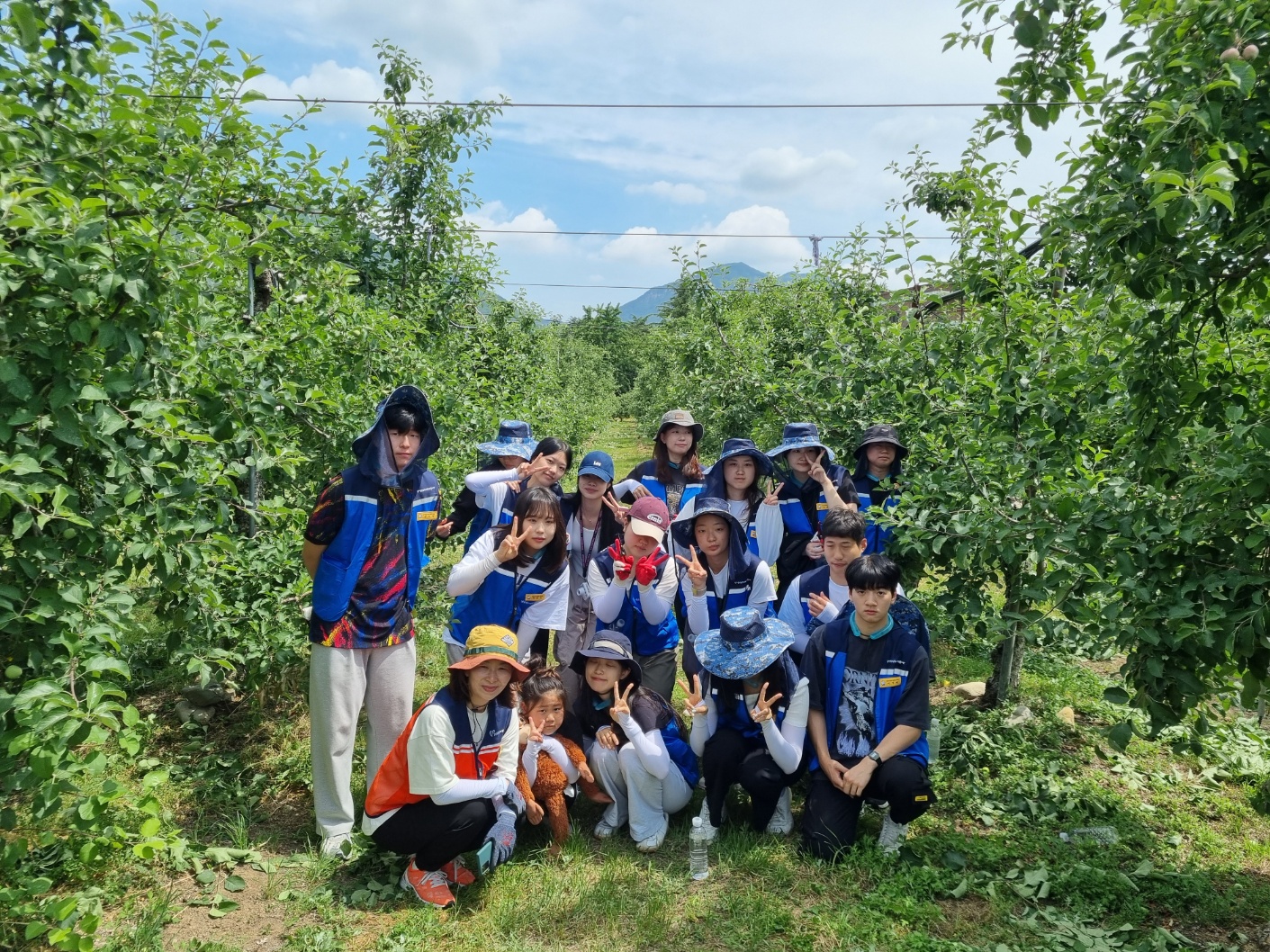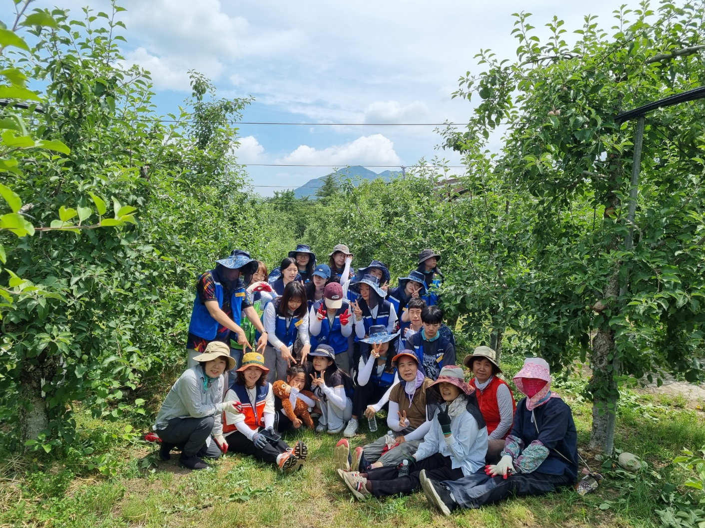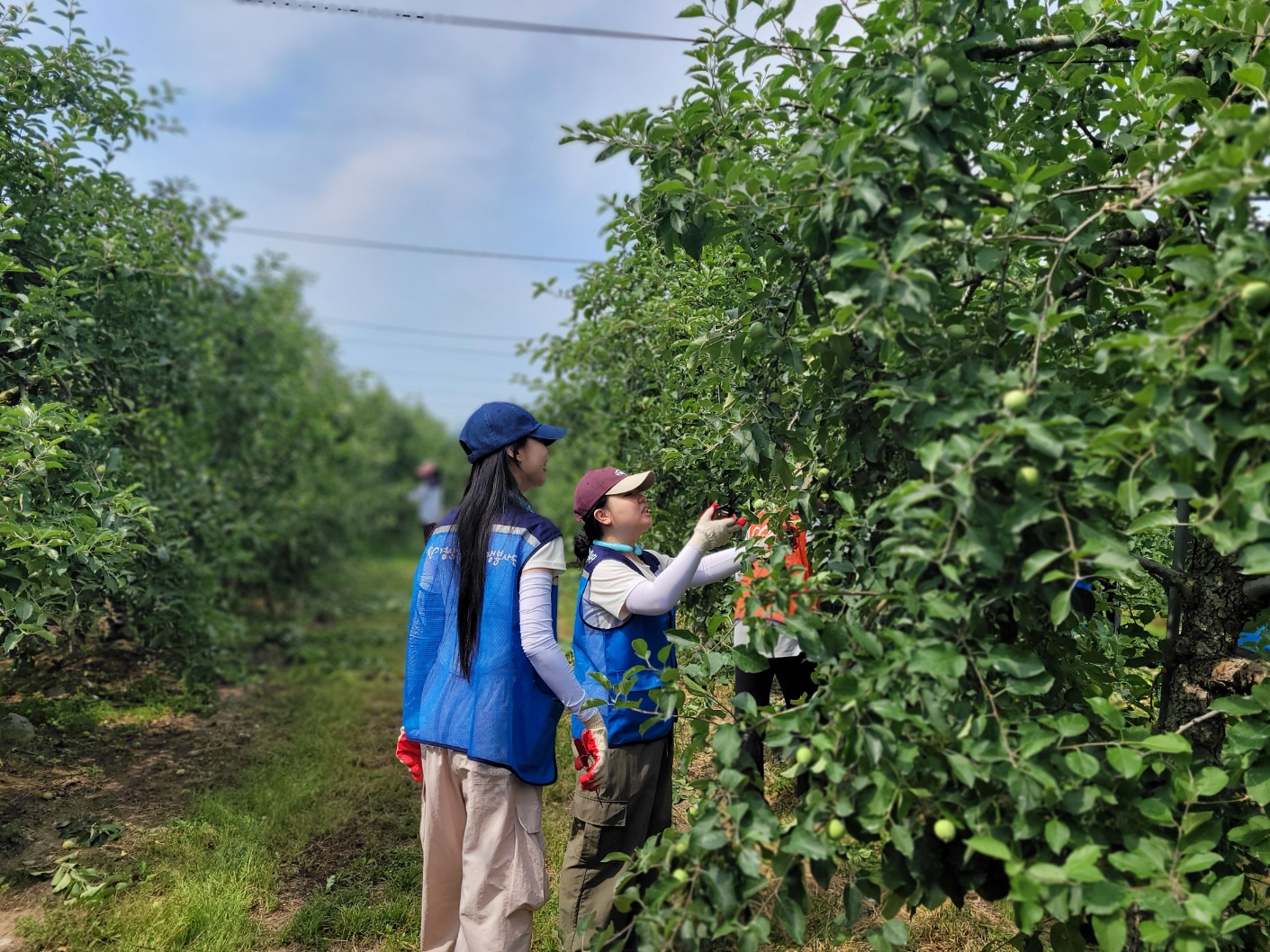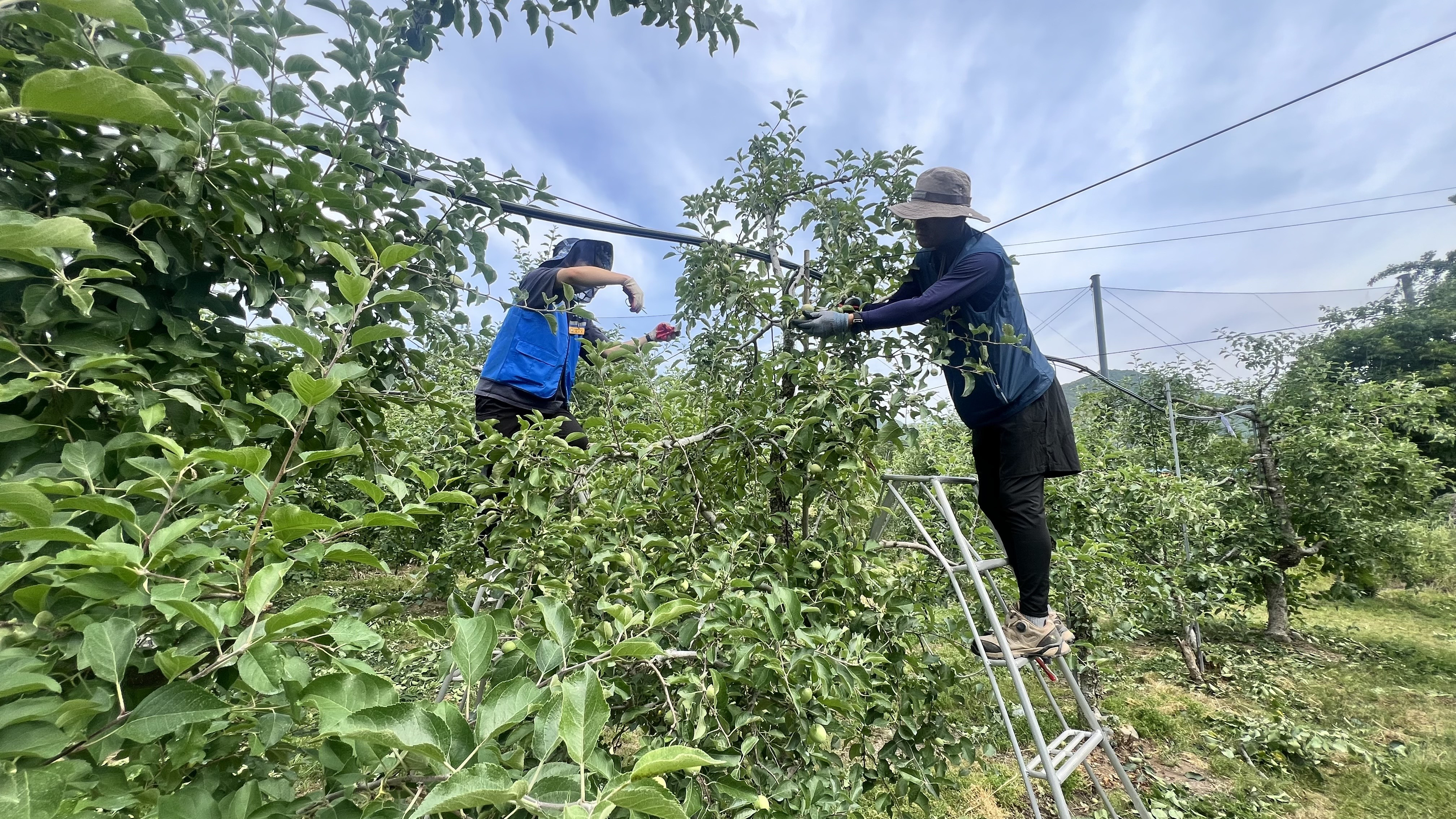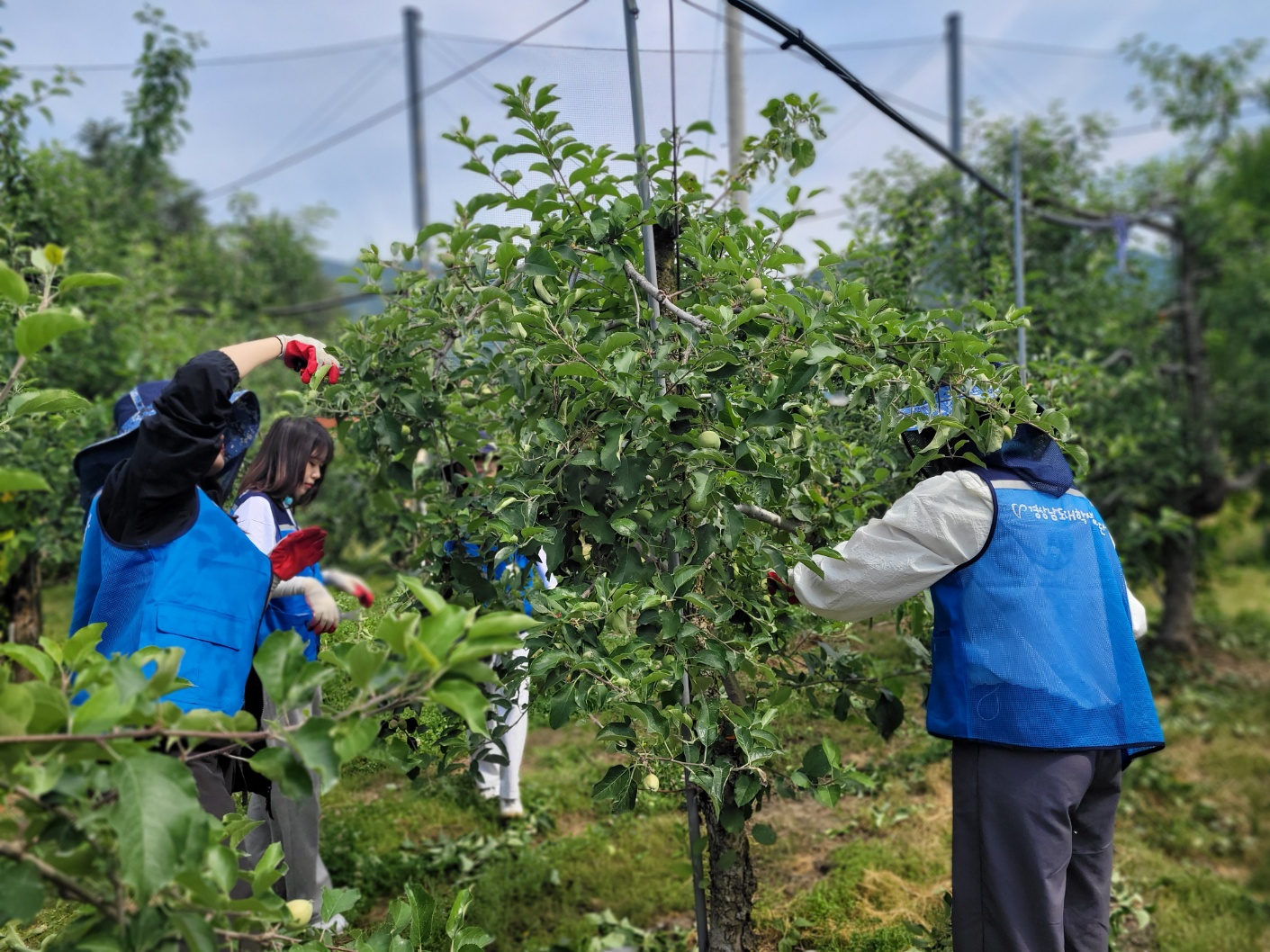 경상남도대학생봉사단원은 밀양 산내면 과수농가에 사과솎기 농촌봉사활동을 하러 갔습니다.😁