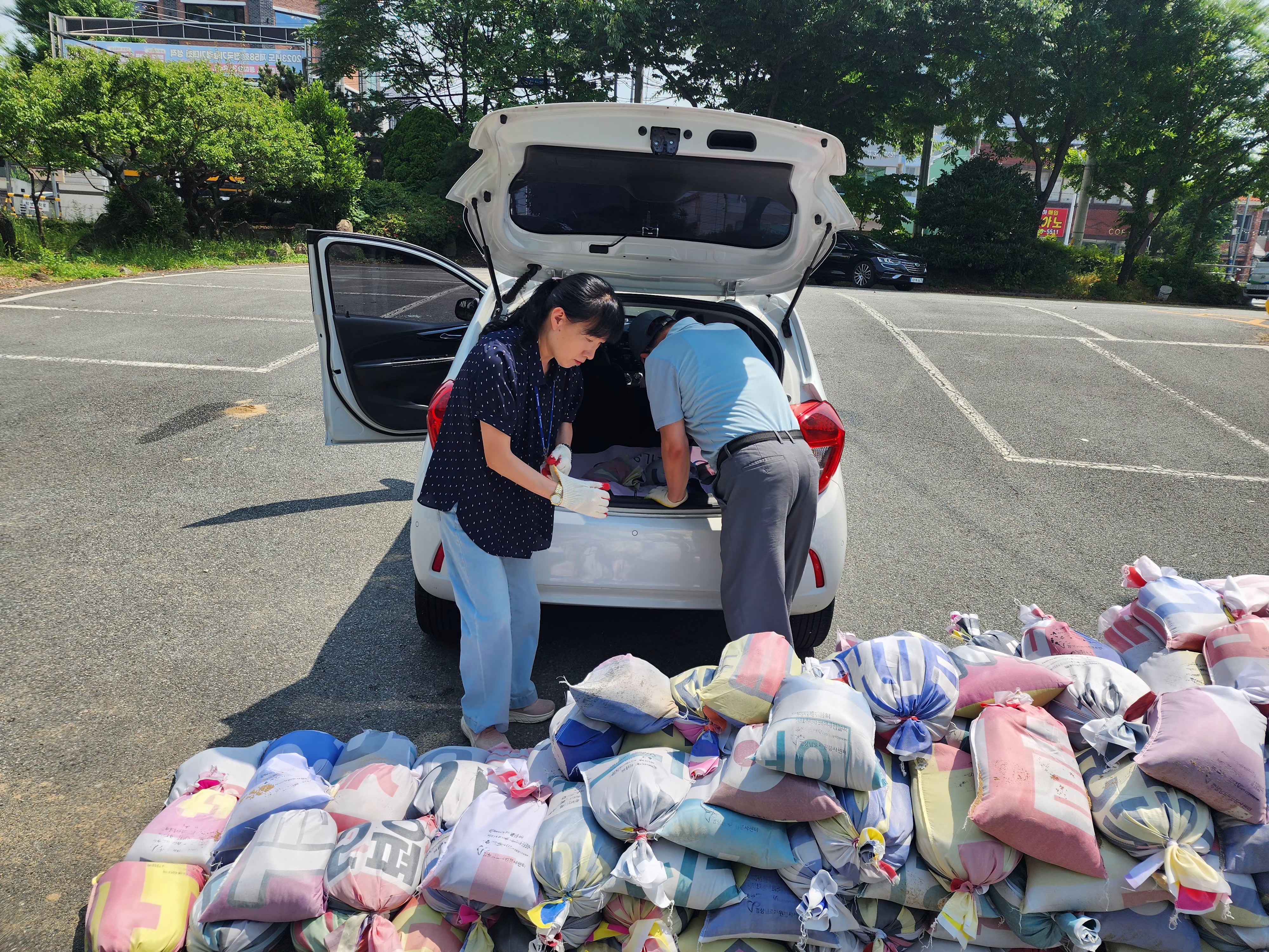 이번 활동으로 모래주머니 600개가 제작이 되었으며, 제작된 모래주머니는 당일 김해시 내 행정복지센터, 요양병원, 사회복지시설 등 필요한 곳에 배분하였습니다.