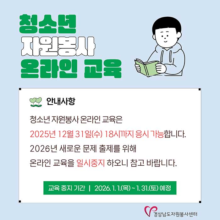 - 문의 : 경상남도자원봉사센터 (평일: 09:00 ~ 18:00)