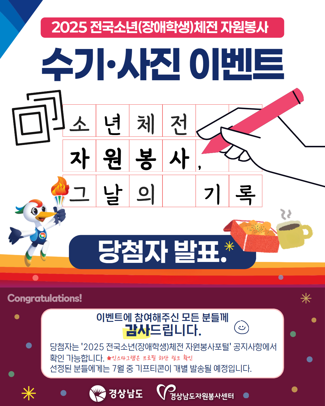 '전국소년(장애학생)체전 자원봉사 수기·사진 이벤트' 선정 결과를 발표합니다.