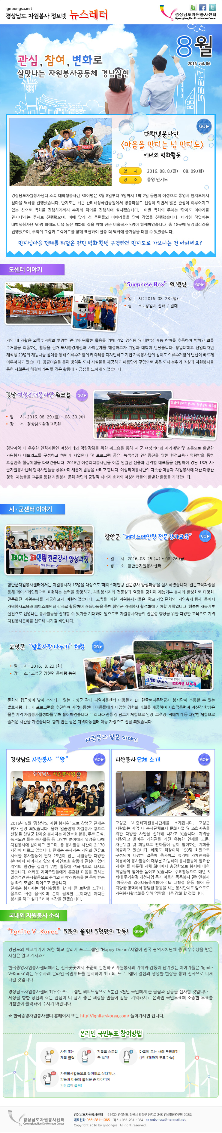 정보자료실 자원봉사 소개 자원봉사 자료실 영상자료실 일반자료실 경자봉 도서관 청소년 온라인 교육명예의 전당 일반자료실 > 정보자료실 > 자원봉사자료실 > 일반자료실 2016.8월 뉴스레터 기타 작성자 자원봉사센터 작성일 2021-03-21 19:04 조회 5563 좋아요 0 싫어요 0 인쇄 « 2016.7월 뉴스레터 2016.9월 뉴스레터 » 목록보기