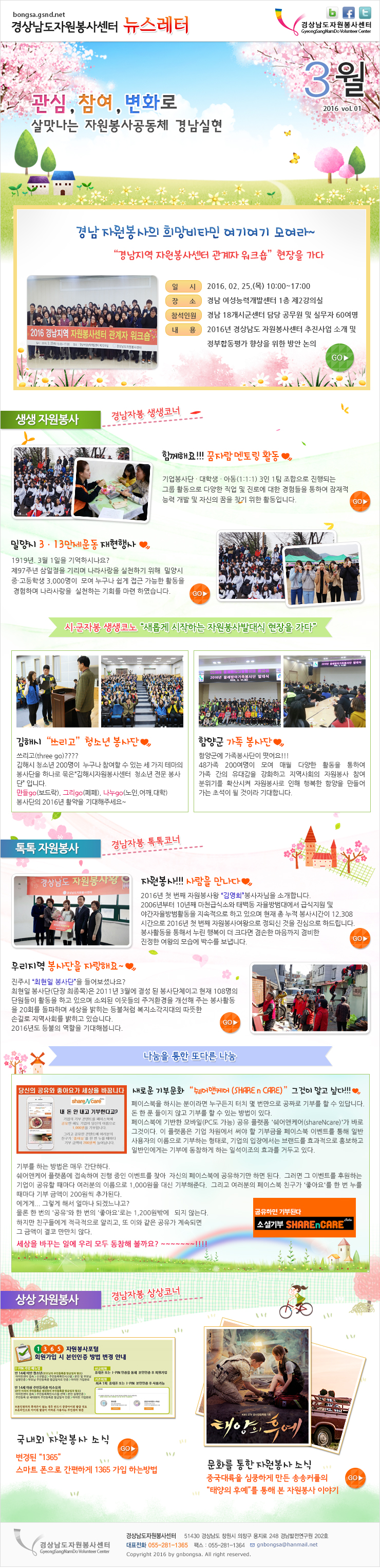 정보자료실 자원봉사 소개 자원봉사 자료실 영상자료실 일반자료실 경자봉 도서관 청소년 온라인 교육명예의 전당 일반자료실 > 정보자료실 > 자원봉사자료실 > 일반자료실 2016.3월 뉴스레터 기타 작성자 자원봉사센터 작성일 2021-03-21 19:00 조회 4342 좋아요 0 싫어요 0 인쇄 « [스토리/2019 이그나이트경남] 청소년은 누구라도 희망이다 2016.4월 뉴스레터 » 목록보기