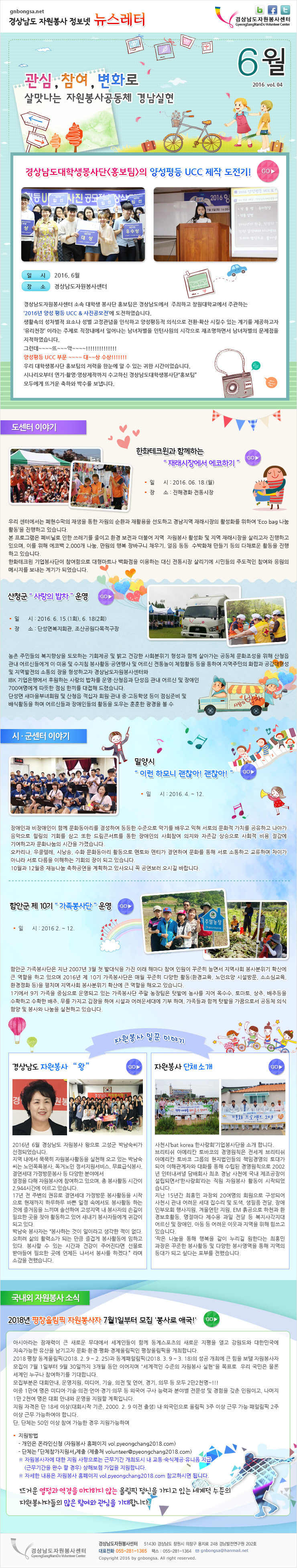 정보자료실 자원봉사 소개 자원봉사 자료실 영상자료실 일반자료실 경자봉 도서관 청소년 온라인 교육명예의 전당 일반자료실 > 정보자료실 > 자원봉사자료실 > 일반자료실 2016.6월 뉴스레터 기타 작성자 자원봉사센터 작성일 2021-03-21 19:03 조회 5441 좋아요 0 싫어요 0 인쇄 « 2016.5월 뉴스레터 2016.7월 뉴스레터 » 목록보기