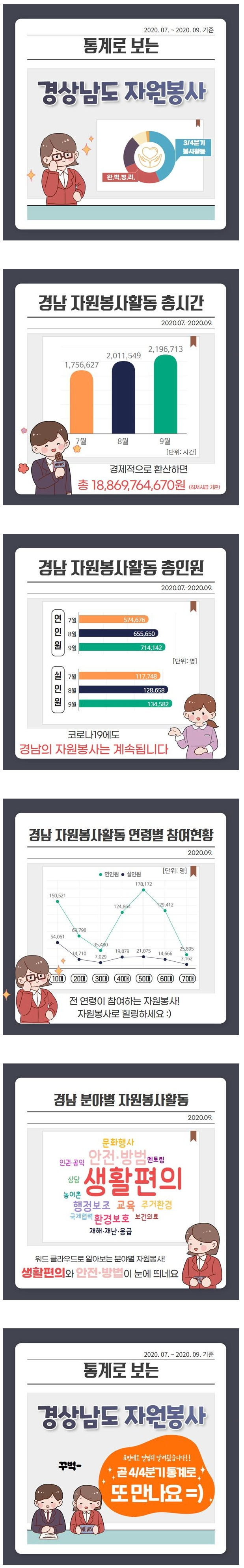 정보자료실 자원봉사 소개 자원봉사 자료실 영상자료실 일반자료실 경자봉 도서관 청소년 온라인 교육명예의 전당 일반자료실 > 정보자료실 > 자원봉사자료실 > 일반자료실 [통계] 2020년 7~9월 경상남도 자원봉사 참여현황 기타 작성자 자원봉사센터 작성일 2021-03-20 21:55 조회 4765 좋아요 0 싫어요 0 인쇄 « [통계] 2020년 4~6월 경상남도 자원봉사 참여현황 [통계] 2020년 10~12월 경상남도 자원봉사 참여현황 » 목록보기